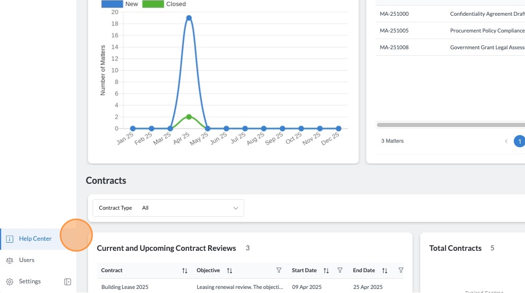 1. From the Cubed by Law Squared Application, click on the "Help Center" menu item.