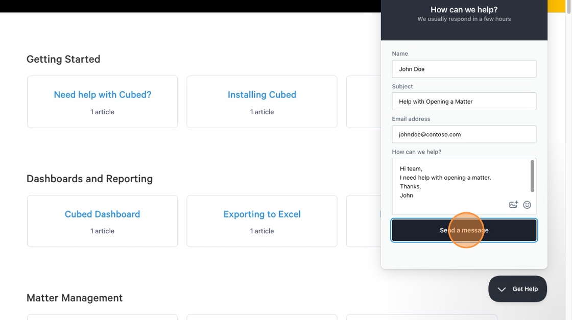 6. Enter in the details of your question, ensuring you have the correct contact details completed, and click "Send a message"