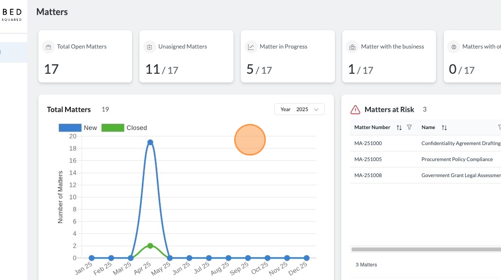 - Matters in Progress: This is the number of matters that are not closed, assigned, and in the "In Progress" status